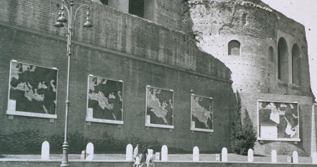 And to the right, tourists on the sidewalk taking in the remaining mid-1930s maps showing the growth of Rome…