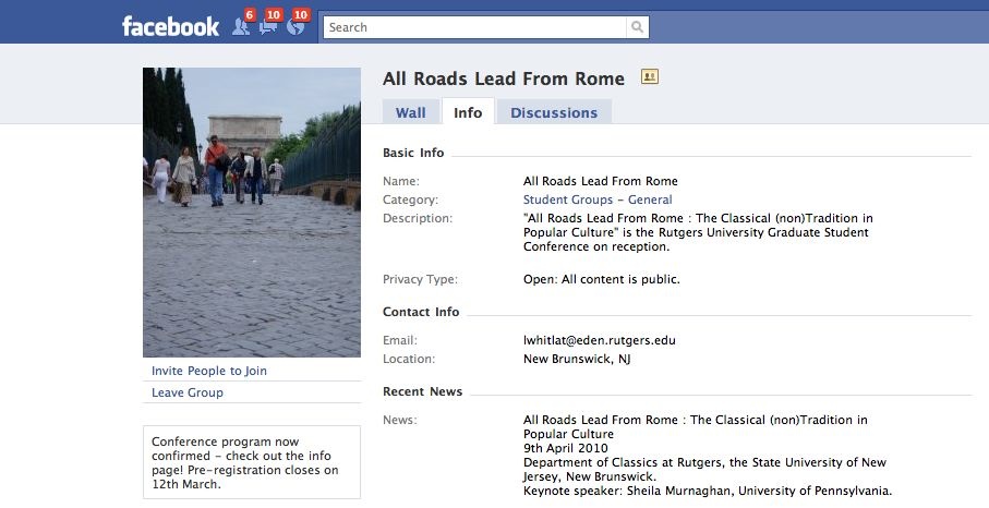 Rutger Classics graduate students Liz Gloyn, Ben Hicks and Lisa Whitlatch are happy to report that pre-registration is now open for the Graduate Student Classics Conference, “All Roads Lead From Rome: The Classical (non)Tradition in Popular Culture.”