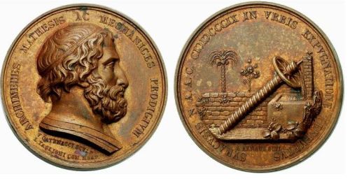 An 1830 medal of the Two Sicilies honors Archimedes (3rd century BCE)