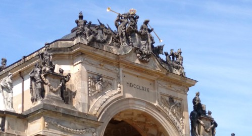 The top of the classically inspired Triumph Arch opposite the New Palace in Sanssouci Park, Potsdam