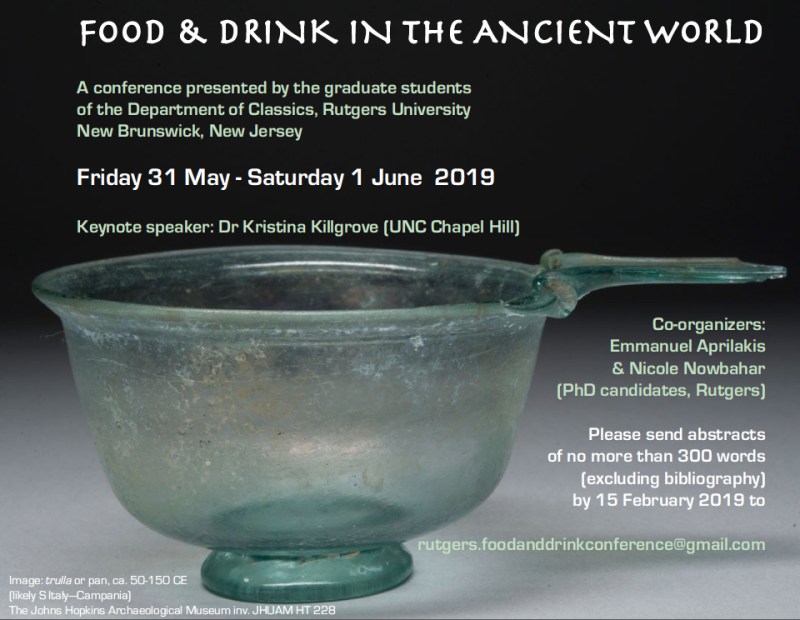 A Rutgers Classics conference ‘Food & Drink in the Ancient World’ (31 May / 1 June 2019): call for papers